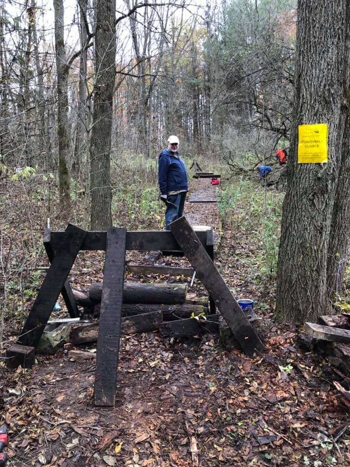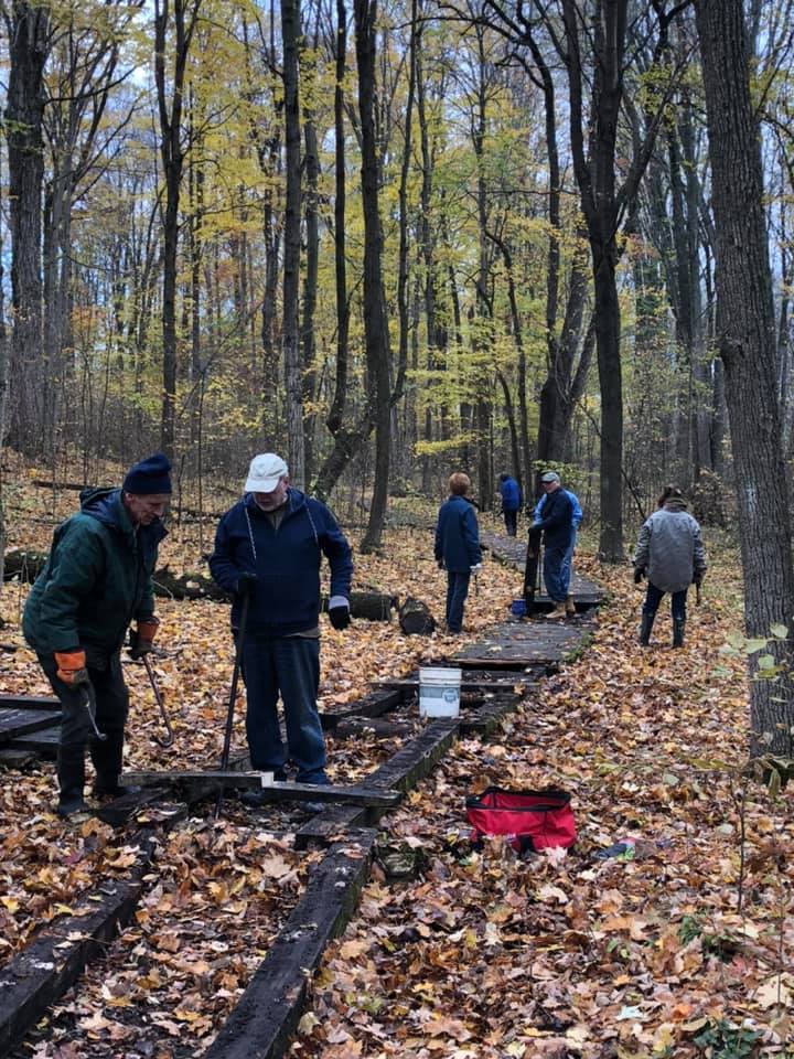 Thanks to the nine volunteers who helped start the dismantling of the boardwalks at the Lawson Nature Reserve on Saturday, October 31, 2020. A little muscle and teamwork and half the east side was deconstructed and part of the west. Both trails are decommissioned at the request of Ontario Nature due to safety concerns. Weather and increased use took their toll this year. New trails will be established next year. The bridge also was under repair. Ingersoll District Nature Club depends on volunteer hours to maintain the reserve for all to enjoy. Anyone willing to help would be warmly welcomed.
