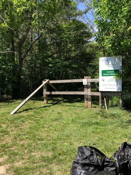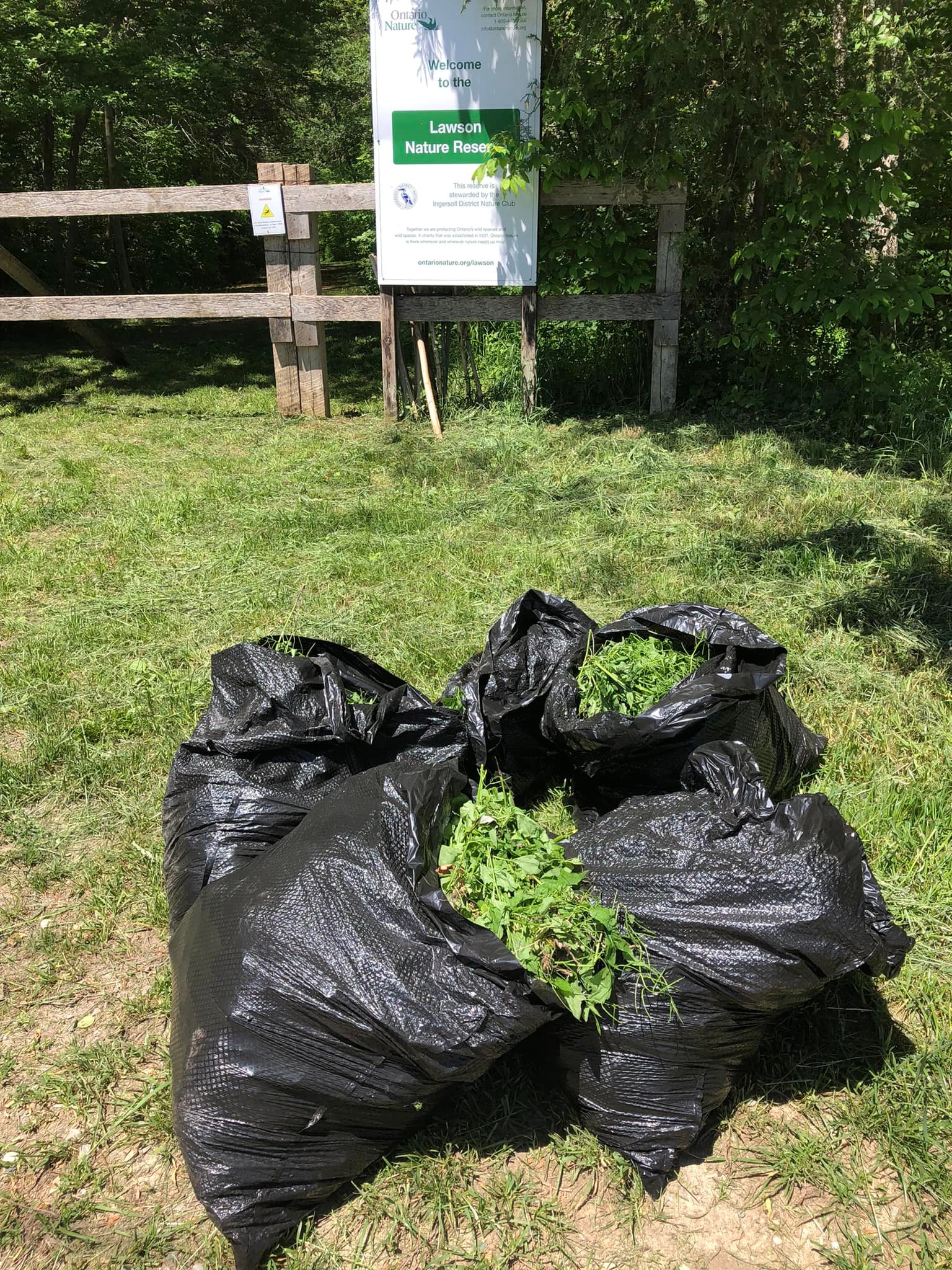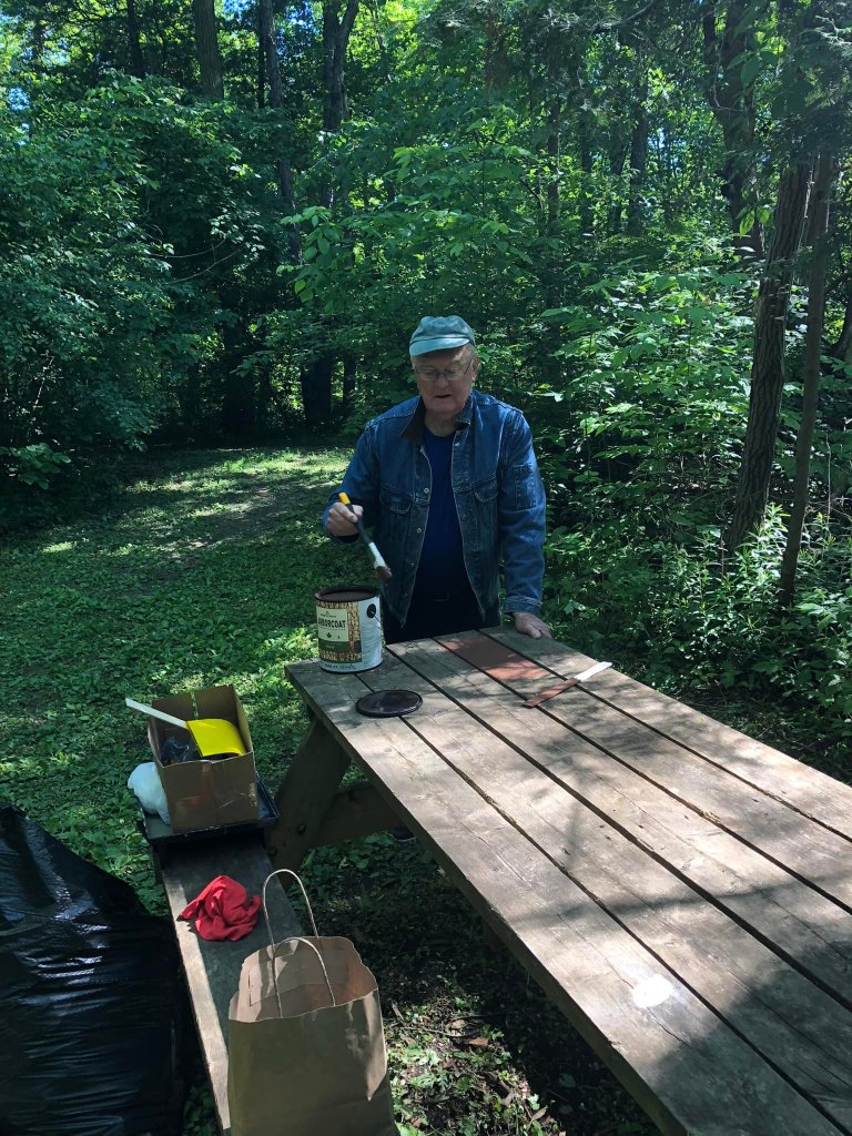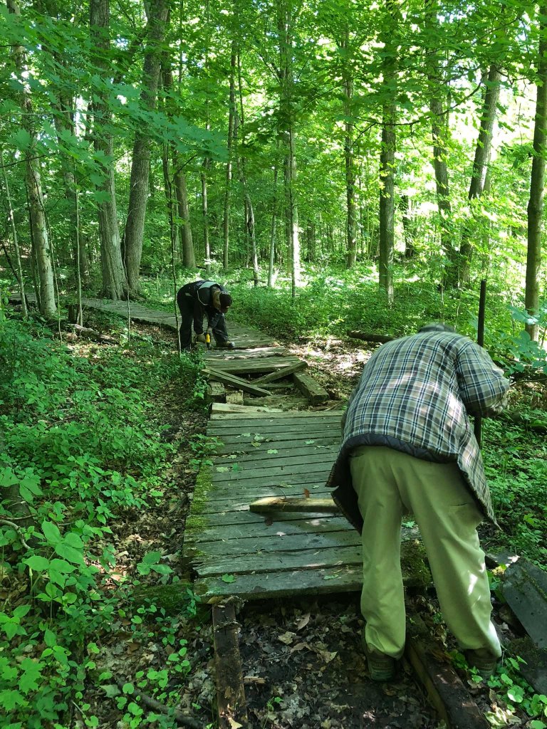 Community Pitch in Day at the Lawson Nature Reserve on Saturday, June 4, 2022, saw 9 members work diligently fixing the front gate, clearing invasive garlic mustard, painting tables, clearing broken boardwalk and installing a small bridge. A good days work! Thanks to the volunteers who gave their time and effort making the LNR a safe place for our many visitors to this beautiful space.