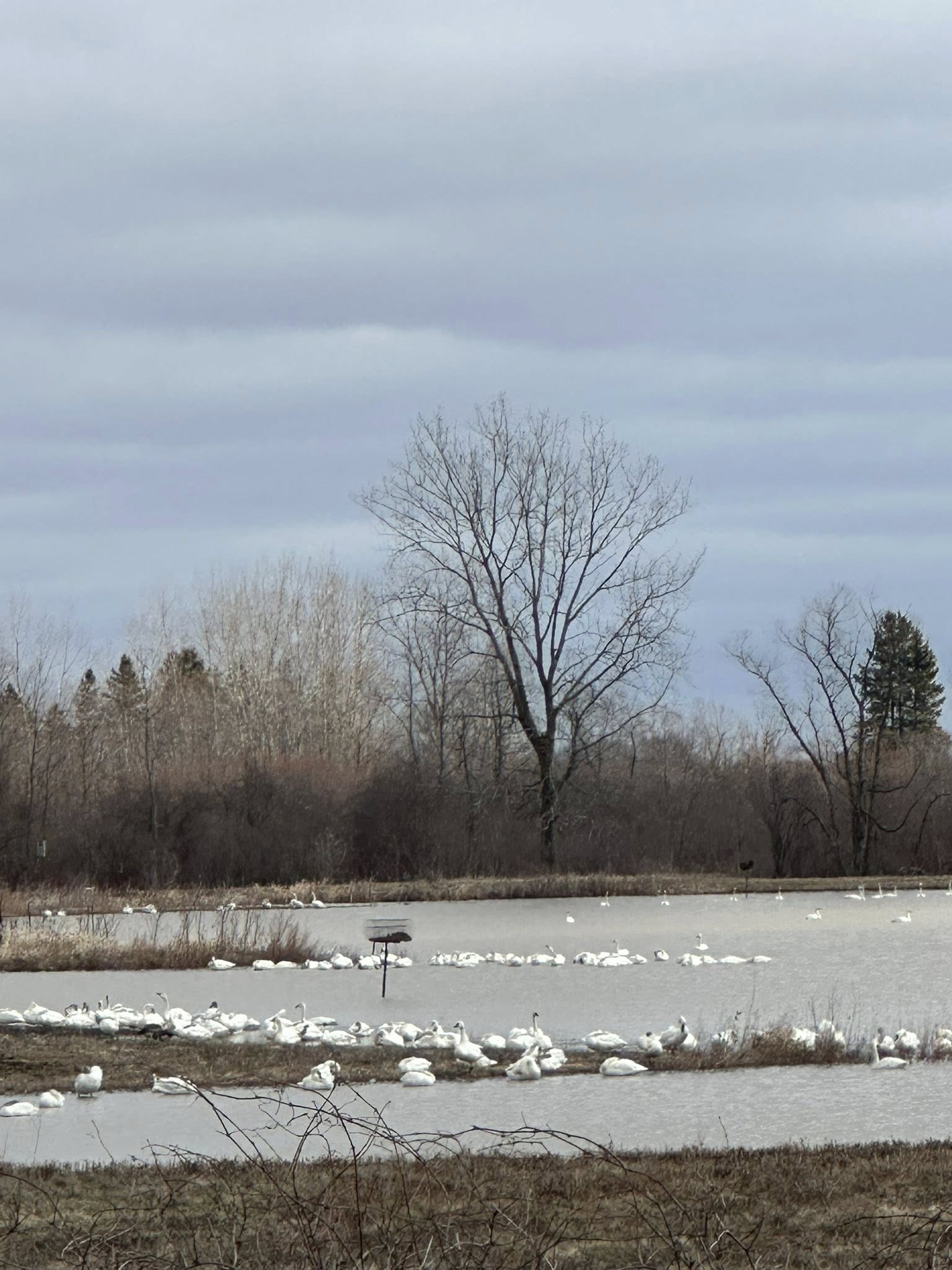 It was crispy cold on March 14, 2026, but it was a beautiful morning for a walk at Archie Coulter Conservation Area, following breakfast at Springwater’s Pancake and Maple Syrup Festival. The Nature Club then travelled to Aylmer Wildlife Management Area to view the tundra swans. The big influx from the day before had already moved on but there were still plenty to view. Thanks to the IDNC club members who came out!